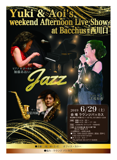 そして、6月29日にはいよいよ初ジャズライブを行います。ジャズボーカル&ピアノの加藤アオイさんとサックスの安倍川純一郎さんと埼玉県西川口にあります。素敵なクラブで行います。私もアオイさんにレッスンしていただきながら、ジャズのいろはを少しづつ習得中です。